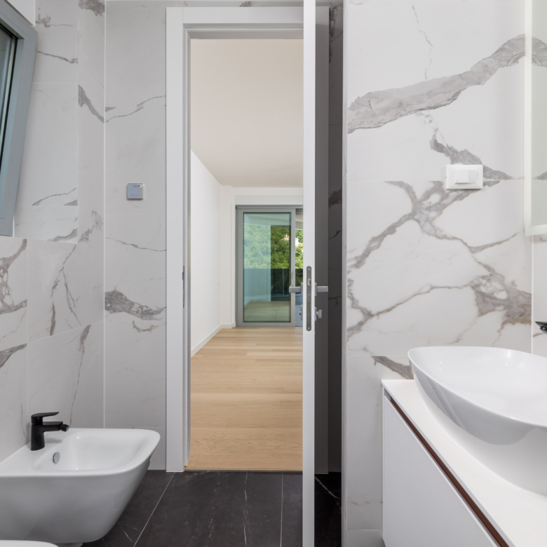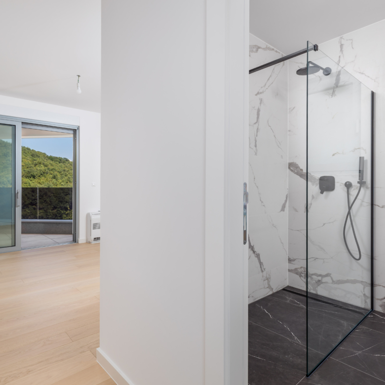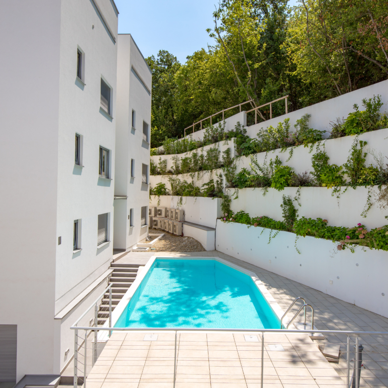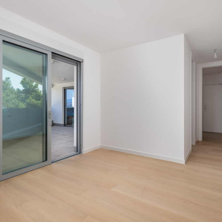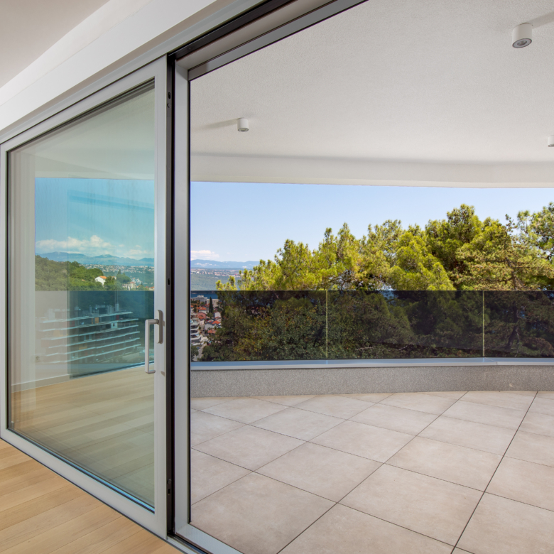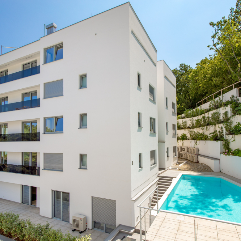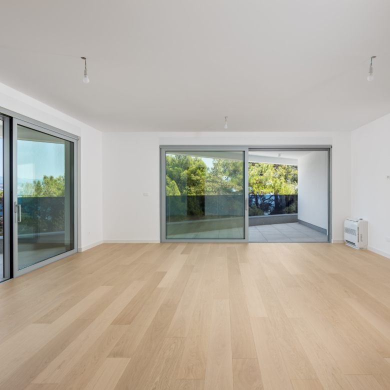 Na drugom katu moderne vile nalazi se prostrani stan ukupne obračunske površine 247 m², s impresivnih 5 balkona ukupne površine 64 m² i otvorenim pogledima prema moru i zelenilu. Glavne značajke stana: 2 dnevna boravka 4 spavaće sobe 4 kupaonice 2 WC-a Unutarnja površina stana: 197 m² Bruto površina stana: 261 m² 5 balkona – ukupno 64 m² 2 garažna te 2 vanjska parkirna mjesta po 12 m² Stan je nenamješten, s neutralnom i suvremenom
