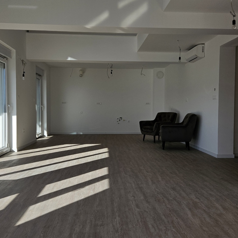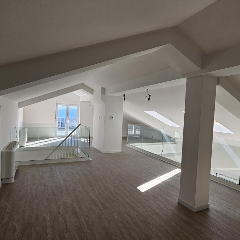 Prodaje se prostrani stan površine 180 m² u modernoj novogradnji, idealan za obiteljski život ili investiciju. Stan uključuje dvije spavaće sobe, dnevni boravak i otvorenu galeriju s pogledom na donju etažu.